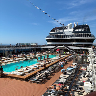 Friendly and helpful. Fewer people trying to sell dining packages that you don’t want or need. The masseuse gave me one of the best deep tissue massages. We absolutely loved the entertainment staff on this cruise - so energetic and engaging! One of the standout moments was the White Party on the top deck, where we danced our way through Zumba Around the World. It was vibrant, fun, and a fantastic way to celebrate under the stars.