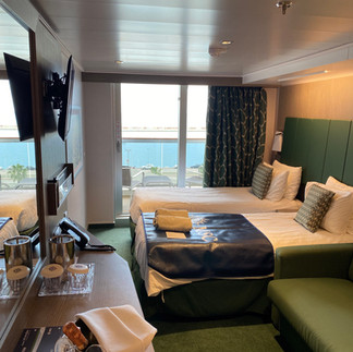 We chose a balcony room, a favourite of ours - in a central location so that we had minimal movement. As a couple, it was perfectly spacious. This was our first time on a ship with a bed by the window, which made it feel a bit quieter. A top tip is to avoid choosing a room near the lift as this should help reduce the amount of footfall outside your room.